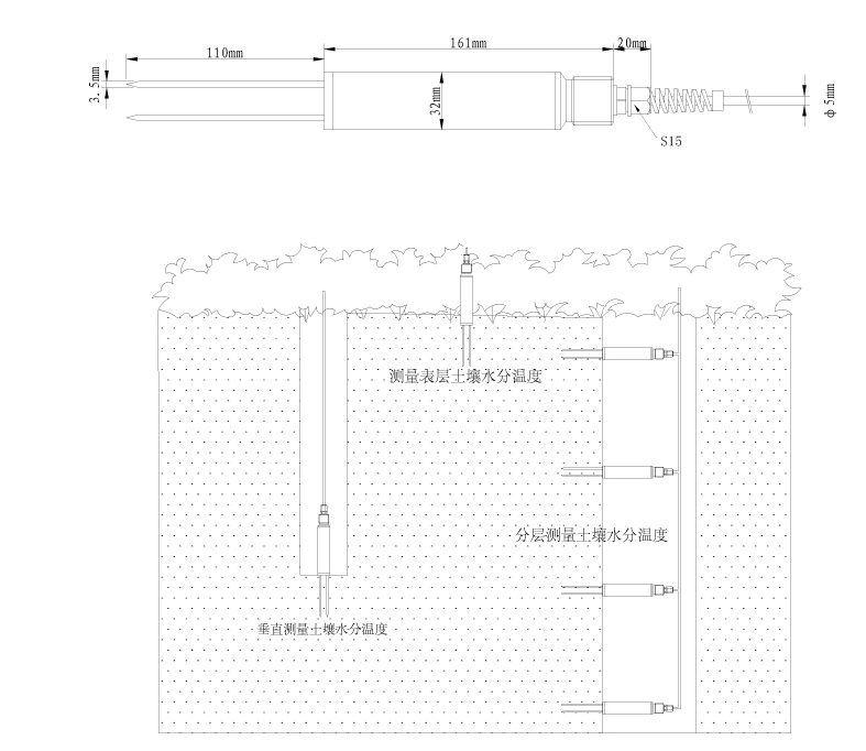 - Точность измерения влажности <±0,03 м2/м2 (±3%), (содержание растворимых солей ec≤0,5 мс/см,