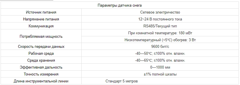 Датчик снега – это интеллектуальный датчик глубины снега, использующий технологию ультразвуковой телеметрии для автоматического и непрерывного мониторинга глубины снега. Он рассчитывает глубину снега, излучая ультразвуковые волны частотой 50 кГц и измеряя разницу во времени между излучением и возвратом сигнала. Устройство работает в двух режимах: обычном и прерывистом с контролем температуры. Он широко применяется для измерений в метеорологии, аэропортах, портах, лабораториях, промышленности, сельском хозяйстве и на транспорте.